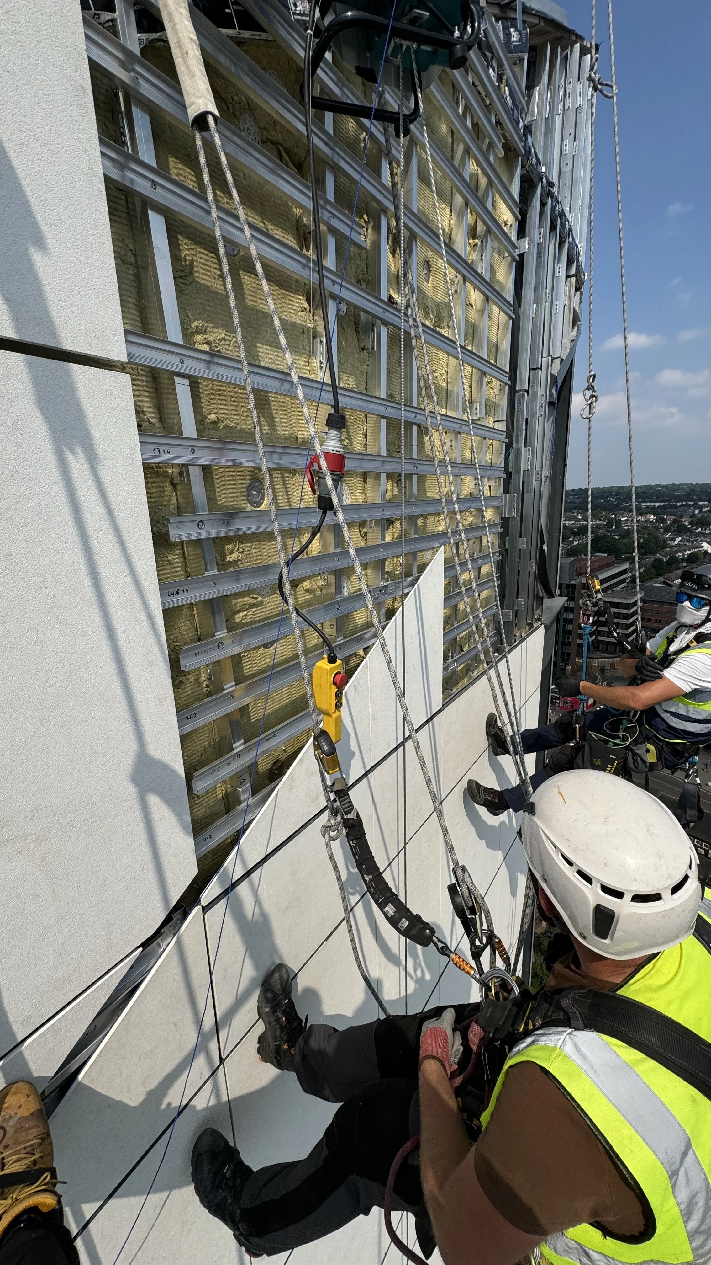 Our IRATA-certified rope access technicians provide a safe and efficient alternative to scaffolding, allowing us to carry out cladding repairs and installations on high-rise and difficult-to-access buildings with minimal disruption.